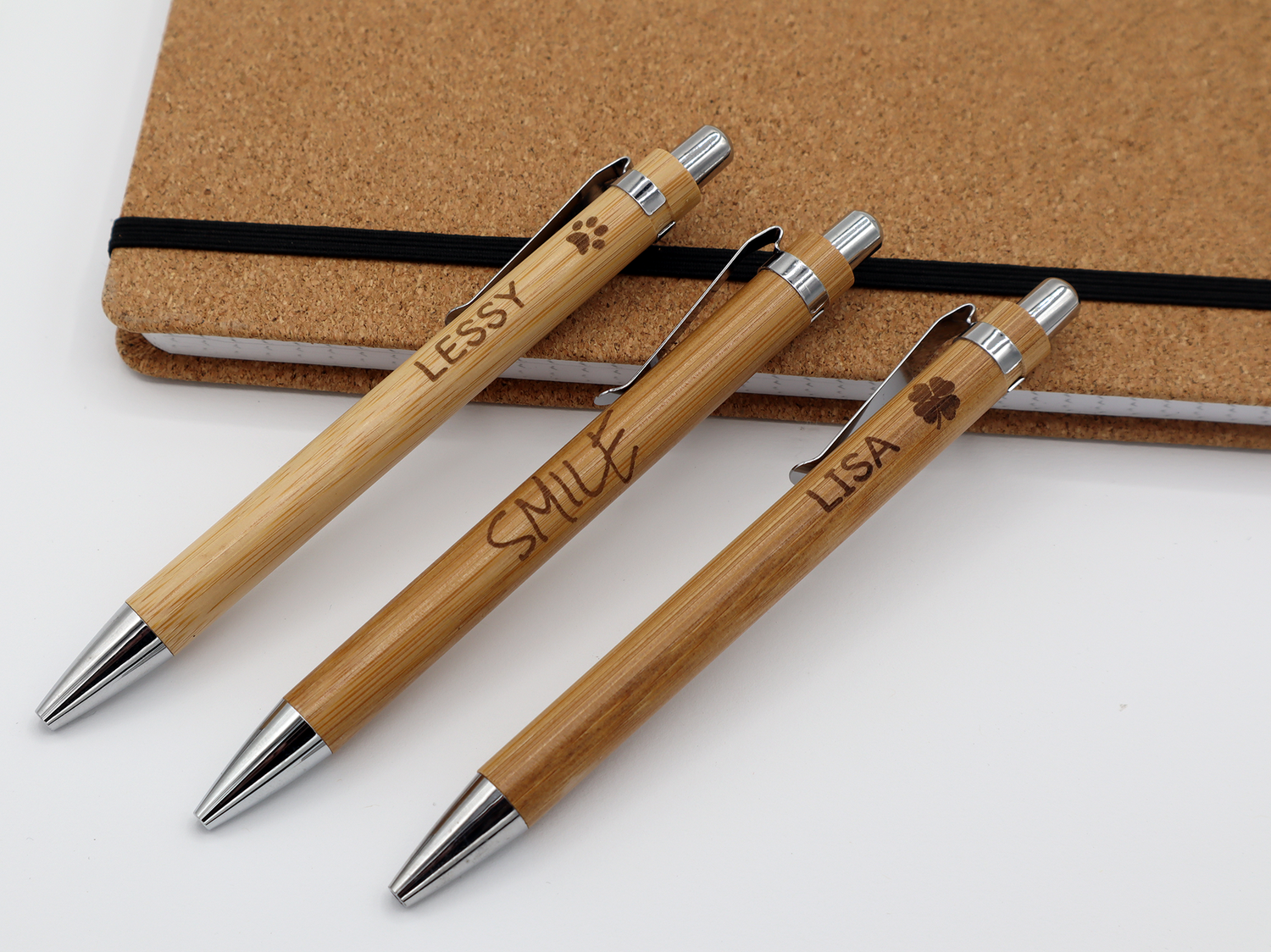 MORWE Bambus-Kugelschreiber mit Kleeblatt Gravur – Nachhaltiges Geschenk als Glücksbringer