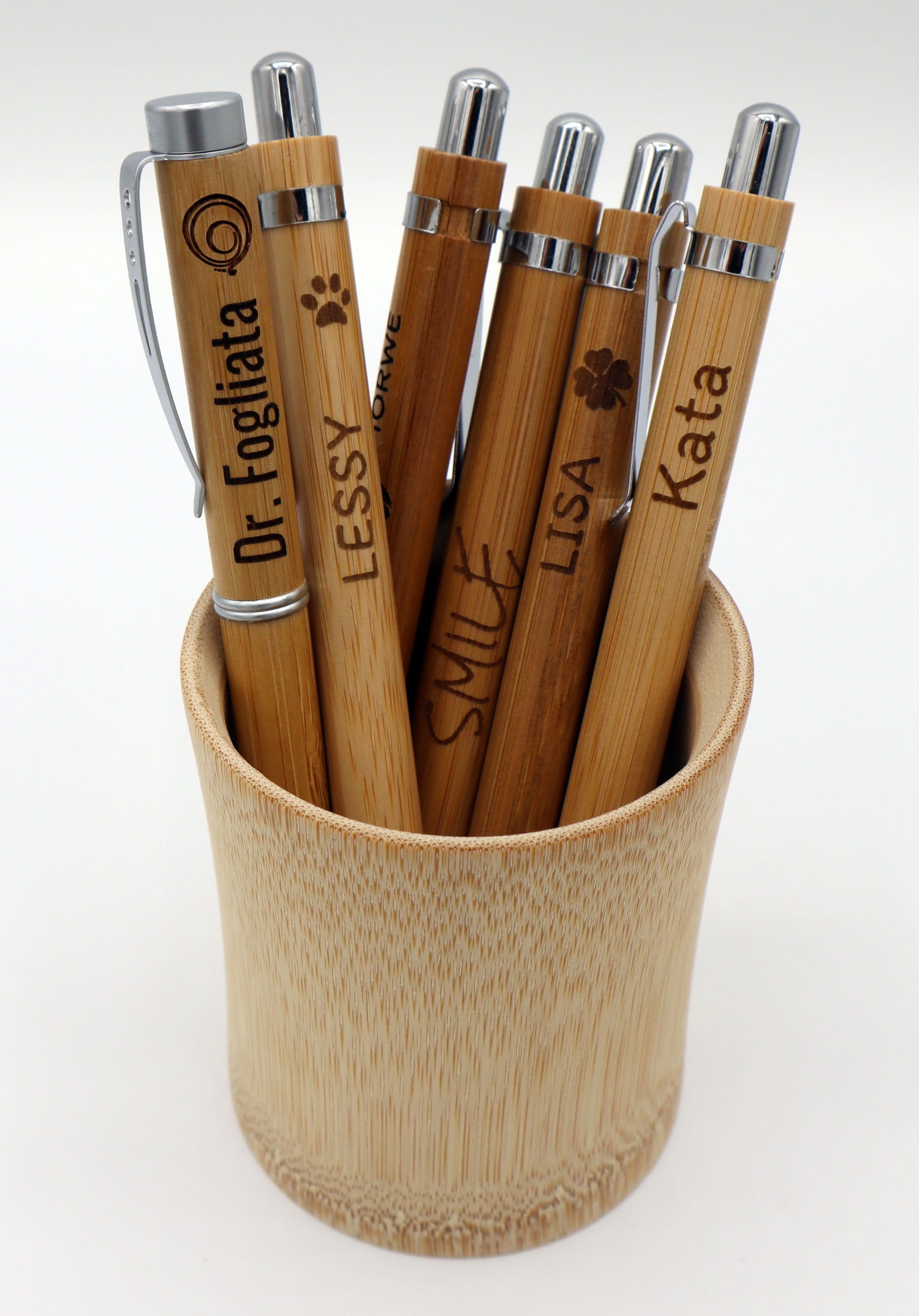 Warum sollten auch Sie sich als Firma für nachhaltige Werbemittel entscheiden? Neben dem allgemeinen Thema der Nachhaltigkeit sind Kugelschreiber aus Bambus und Holz optisch echte Hingucker sowie haptische Handschmeichler. Durch die austauschbaren Minen besitzen die Stifte eine deutlich längere Lebensdauer als herkömmliche Werbemittel und steigern dadurch die Sichtbarkeit Ihres Unternehmens!